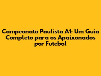 Campeonato Paulista A1: Guia Completo Para Fãs De Futebol