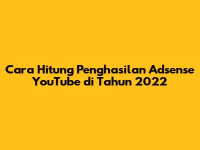 Cara Hitung Penghasilan Adsense YouTube Di Tahun 2022