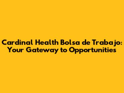 Exploring the Cardinal Health Job Market (Bolsa de Trabajo)