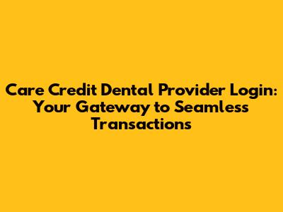 Okay, let's get down to the nitty-gritty. The Care Credit dental provider login is your portal to managing all things related to Care Credit. This is where you'll handle everything from submitting transactions to viewing patient accounts and accessing important reports. Having a smooth login process is crucial to make sure your day runs efficiently. The system is designed to be user-friendly, but like any new platform, there's always a bit of a learning curve. So, let's break down the steps and make sure you're all set to go.