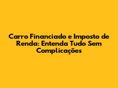 Carro Financiado E Imposto De Renda: Guia Completo E Sem Mistérios