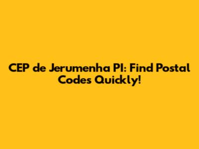 CEP De Jerumenha PI: Find Postal Codes Quickly!