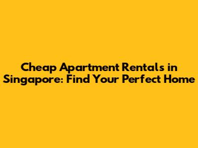 Cheap Apartment Rentals In Singapore: Find Your Perfect Home