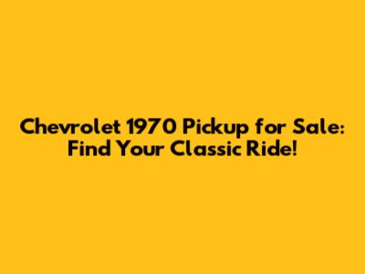 Chevrolet 1970 Pickup For Sale: Find Your Classic Ride!