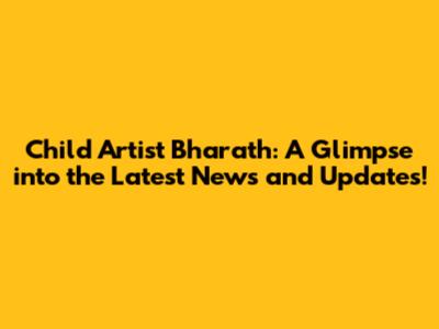 Child Artist Bharath: Updates, News & More!