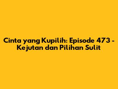 Hai, guys! Balik lagi nih, kita bahas episode seru dari Cinta yang Kupilih! Kali ini, kita akan menyelami lebih dalam episode 473 yang penuh dengan kejutan, drama, dan pilihan sulit yang harus dihadapi para karakter kesayangan kita. Siap-siap, ya, karena episode ini bakal bikin kalian geregetan dan penasaran! Kita akan membahas detail-detail penting, menganalisis perkembangan karakter, dan tentu saja, menebak-nebak apa yang akan terjadi selanjutnya. Jangan lupa, ya, siapkan camilan dan minuman favorit kalian biar makin asyik nontonnya! Yuk, langsung saja kita mulai bedah episode 473 ini!