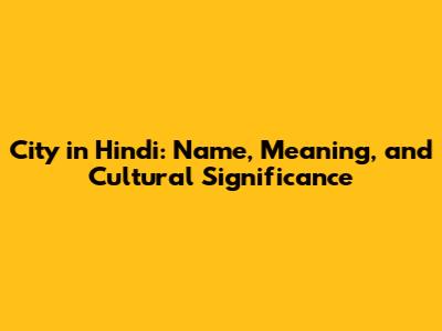 City In Hindi: Name, Meaning, And Cultural Significance