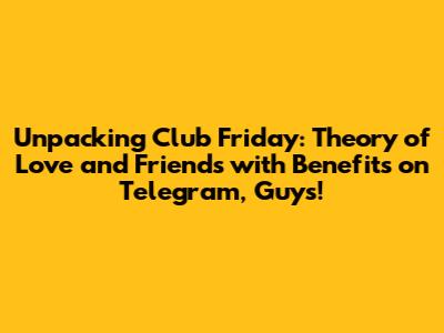 What's up, everyone! Today, we're diving deep into something that's been buzzing around, especially with the fans of Club Friday The Series. We're talking about the 'Theory of Love' episode, and how the whole concept of Friends with Benefits (FWB) plays out, particularly when people are looking for discussions or content related to it on platforms like Telegram. This series, man, it's known for its raw and often controversial takes on relationships, and 'Theory of Love' is no exception. It really pushes the envelope, making us question the lines we draw between friendship and romance, and what happens when those lines get blurred, especially in the digital age. We're gonna break down the series' take on this tricky dynamic and explore why Telegram has become a go-to spot for those seeking out conversations and, let's be real, other stuff related to these themes. So grab your popcorn, settle in, and let's get into it!