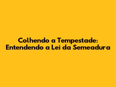 Colhendo A Tempestade: Entendendo A Lei Da Semeadura