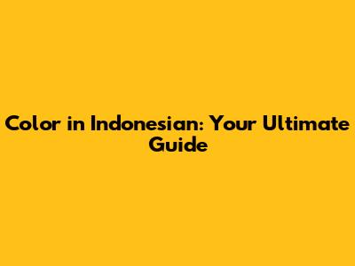 Color In Indonesian: Your Ultimate Guide