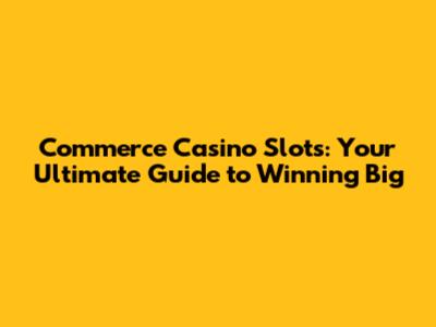Commerce Casino Slots: Your Guide To Winning Big