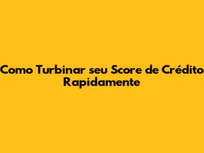 Como Turbinar Seu Score De Crédito Rapidamente