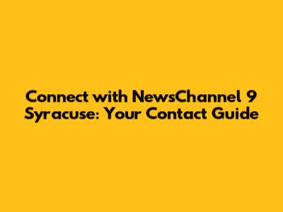 Connect With NewsChannel 9 Syracuse: Your Contact Guide