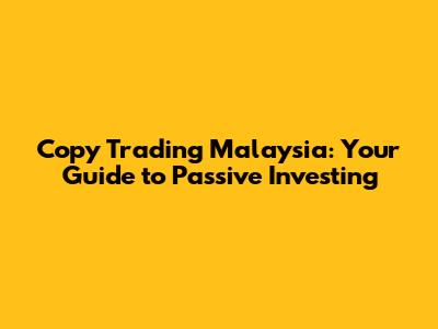 Copy Trading Malaysia: Your Guide To Passive Investing