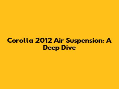 Corolla 2012 Air Suspension: Troubleshooting & Upgrades