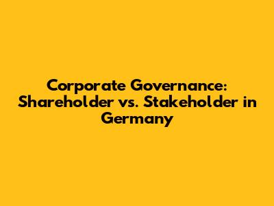 Corporate Governance: Shareholder Vs. Stakeholder In Germany