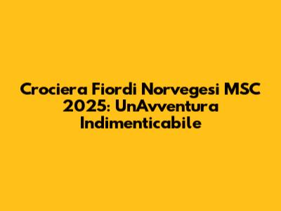 Crociera fiordi MSC prezzi 2025? Siete pronti a salpare per un'avventura mozzafiato tra i maestosi fiordi norvegesi a bordo delle navi MSC nel 2025? Preparatevi a vivere un'esperienza indimenticabile, tra paesaggi spettacolari, aria fresca e la magia del Nord. In questo articolo, esploreremo tutto ciò che c'è da sapere sulle crociere MSC nei fiordi norvegesi del 2025, dai prezzi e le offerte speciali, agli itinerari più affascinanti e i consigli utili per pianificare al meglio la vostra vacanza da sogno. Ragazzi, se siete amanti della natura, dell'avventura e desiderate una vacanza diversa dal solito, una crociera nei fiordi norvegesi è la scelta perfetta. Le navi MSC offrono un'esperienza di viaggio completa, con comfort, divertimento e la possibilità di esplorare alcuni dei luoghi più belli del mondo. Quindi, cosa aspettate? Immergiamoci nel mondo delle crociere fiordi norvegesi MSC 2025 e scopriamo come rendere la vostra vacanza un'esperienza indimenticabile.