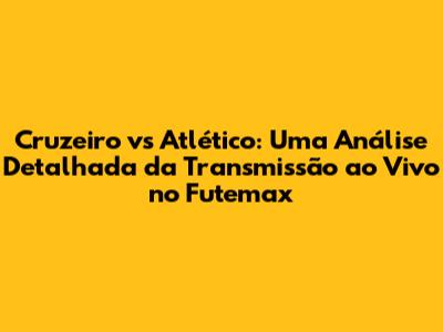 Cruzeiro vs Atlético ao vivo Futemax é um dos grandes encontros do futebol brasileiro, um clássico que sempre gera grande expectativa e paixão. Se você é um fã de futebol e está procurando uma maneira de assistir a este jogo emocionante ao vivo, você veio ao lugar certo. Neste artigo, vamos explorar como você pode acompanhar a partida entre Cruzeiro e Atlético através do Futemax, além de fornecer uma análise detalhada sobre o que esperar do jogo e como se preparar para a transmissão.