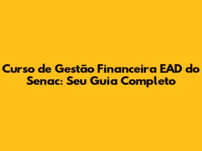 O Que é o Curso de Gestão Financeira EAD do Senac?