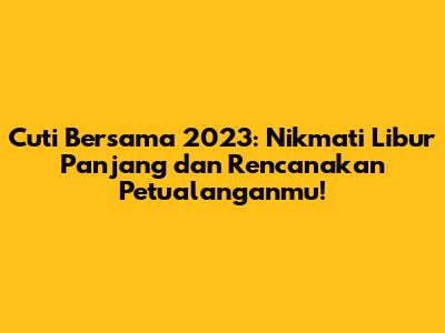 Jadi, guys, cuti bersama 2023 adalah kesempatan emas untuk berlibur dan melepas penat. Dengan merencanakan liburan yang matang, kalian bisa menikmati waktu liburan yang menyenangkan dan tak terlupakan. Jangan lupa untuk mencatat tanggal cuti bersama, membuat rencana perjalanan, dan memilih destinasi wisata yang sesuai dengan minat dan budgetmu. Selamat merencanakan liburan dan selamat menikmati cuti bersama 2023!