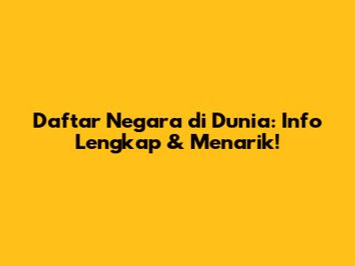 Guys, pernah gak sih kalian kepikiran, sebenarnya ada berapa banyak negara sih di dunia ini? Nah, kali ini kita bakal bahas tuntas daftar negara-negara di dunia, lengkap dengan info-info menarik yang mungkin belum kalian tahu. Yuk, simak!