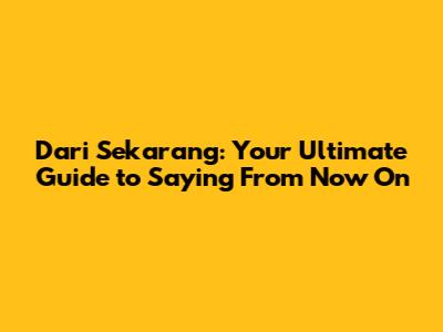 Dari Sekarang: Your Ultimate Guide To Saying From Now On