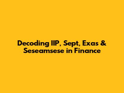Hey guys! Ever stumbled upon a bunch of financial acronyms and felt like you're trying to read a foreign language? Finance, like any specialized field, has its own set of terms and abbreviations that can seem daunting at first. Today, we're going to break down some of these terms – specifically IIP, Sept, Exas, and Seseamsese – to give you a clearer understanding of what they mean in the world of finance. So, grab your coffee, and let's dive in!