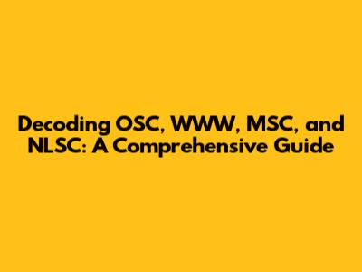 Decoding OSC, WWW, MSC, And NLSC: A Comprehensive Guide