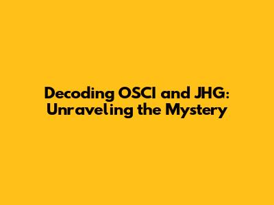Decoding OSCI And JHG: Unraveling The Mystery
