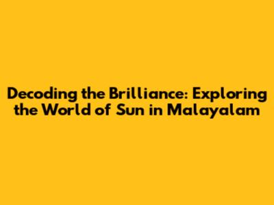 Decoding The Brilliance: Exploring The World Of Sun In Malayalam