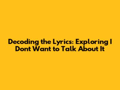 Decoding The Lyrics: Exploring 'I Don't Want To Talk About It'