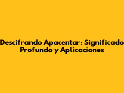 Descifrando 'Apacentar': Significado Profundo Y Aplicaciones