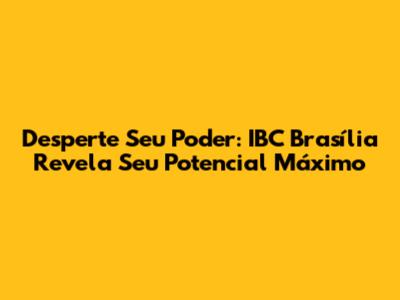 Desperte Seu Poder: IBC Brasília Revela Seu Potencial Máximo