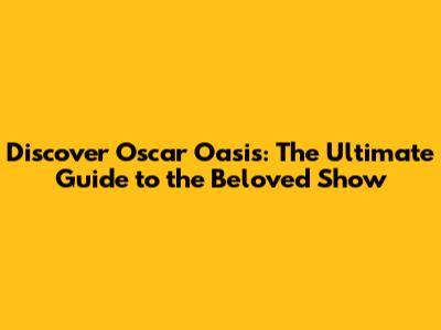 Discover Oscar Oasis: The Ultimate Guide To The Beloved Show