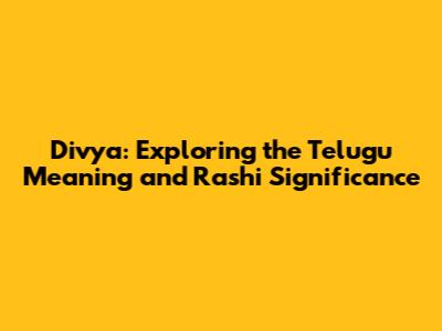 Divya: Unveiling The Telugu Meaning And Rashi Connection