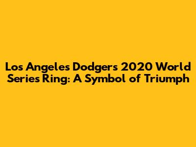 Dodgers 2020 World Series Ring: A Symbol Of Triumph