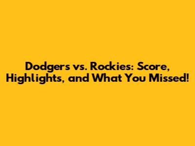 Dodgers Vs. Rockies: Score, Highlights, And What You Missed!