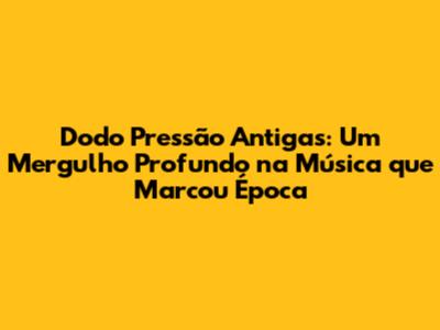 As Músicas Mais Icônicas de Dodo Pressão Antigas: Um Top 5 Imperdível