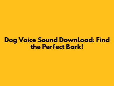 Dog Voice Sound Download: Find The Perfect Bark!