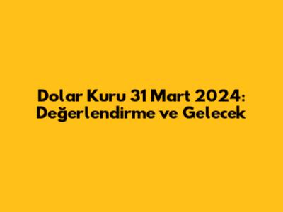 Hoş Geldiniz! 31 Mart 2024 Dolar Kurunu Anlamak