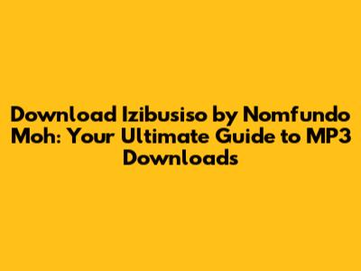 Hey music lovers! Are you searching for izibusiso nomfundo moh mp3 download? You've landed in the right spot! Today, we're diving deep into the world of Nomfundo Moh's incredible track, "Izibusiso," and exploring how you can easily get your hands on the MP3 version. We'll cover everything from where to download it safely to why this song is making waves. So, grab your headphones, get comfy, and let's get started on this musical journey. Finding and downloading your favorite music can sometimes feel like navigating a maze. But don’t worry, we're here to be your guides. "Izibusiso" is not just another song; it's an experience. Nomfundo Moh has a way of connecting with her audience, and this track is a perfect example of her talent. This guide will provide you with all the information you need to enjoy "Izibusiso" on your terms. We'll look at the best platforms for downloading, tips to ensure you download safely, and why this song is a must-have in your playlist. Whether you’re a long-time fan or new to Nomfundo Moh’s music, this is your one-stop resource. We'll also take a quick look at why this song resonates with so many people. The soulful vocals, the captivating lyrics, and the overall vibe of the song make it a truly special listening experience. The popularity of "Izibusiso" is a testament to its quality and Nomfundo Moh's artistry. Stick around, and let's make sure you don't miss out on this amazing track. Finding your favorite music should be easy and enjoyable, and that’s precisely what we aim to do here. So, are you ready to download "Izibusiso" and add some magic to your playlist? Let's go!