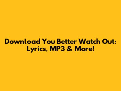 Download 'You Better Watch Out': Lyrics, MP3 & More!
