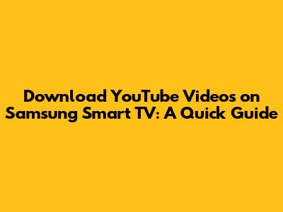 Hey guys! Want to watch your favorite YouTube videos offline on your Samsung Smart TV? Well, it's a bit of a process, but totally doable. Let's dive into how to download YouTube videos on your Samsung Smart TV and enjoy your favorite content anytime, anywhere!