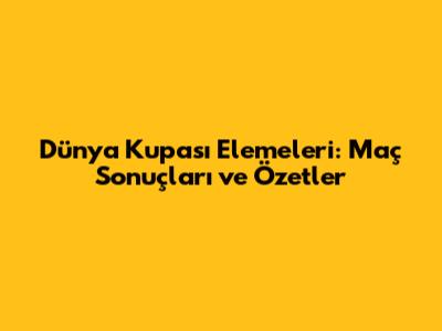 Dünya Kupası Elemeleri: Maç Sonuçları Ve Özetler