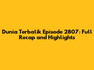 Dunia Terbalik Ep 2807: Full Episode & Highlights