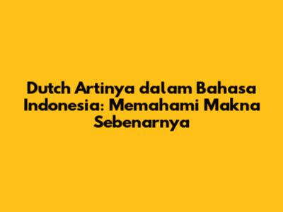 Kesimpulan: "Dutch" Itu Apa Sih?