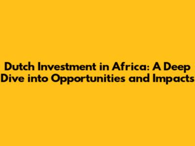 Dutch Investment In Africa: Opportunities & Impact