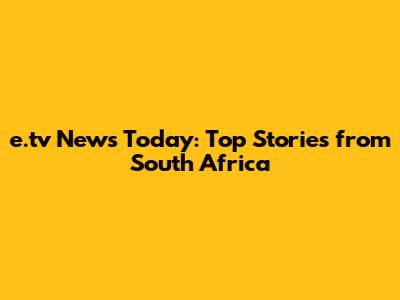 E.tv News Today: Top Stories From South Africa
