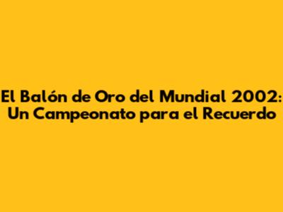 El Balón De Oro Del Mundial 2002: El Triunfo Inolvidable