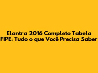Elantra 2016 Completo: Guia FIPE Detalhado E Dicas!
